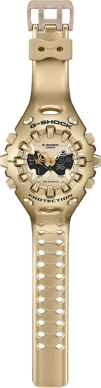 Новинка в серии G-Shock с ярким футуристичным дизайном. Система собственной разработки Casio Shock Release Hand, в которой стрелки не крепятся к валу напрямую, а крепятся с помощью магнитного поля, что позволяет эффективно поглощать и рассеивать удары. Противоударный корпус защищает механизм от ударов и вибрации.