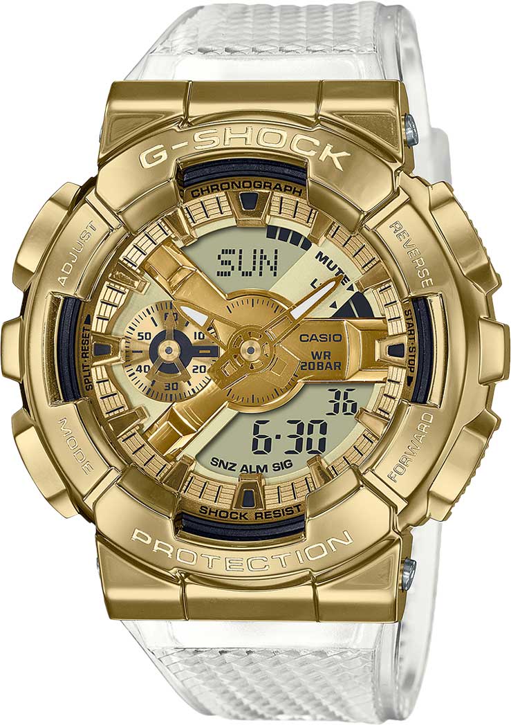Новинка часов из серии G-SHOCK как всегда выполнены в лучших традициях японского качества.G-Shock.Противоударный корпус защищает механизм от ударов и вибрации. Защищены от магнитных полей. Модуль часов рассчитан на работу при низких температурах до -10°С/14°F. Циферблат подсвечивается светодиодом, при недостаточном освещении во время поворота запястья в сторону лица подсветка включается автоматически. Цвет подсветки: белый. Необритовое светонакопительное покрытие обеспечивает длительное послесвечение в темноте даже после кратковременного нахождения на свету. 12-ти и 24-х часовой формат времени. Секундомер с точностью показаний 1/100с и временем измерения 1000ч. SPLIT-хронограф.Таймер обратного отсчета от 1мин до 24ч. Мировое время – 48 городов (31 часовой пояс), всемирное координированное время (UTC).