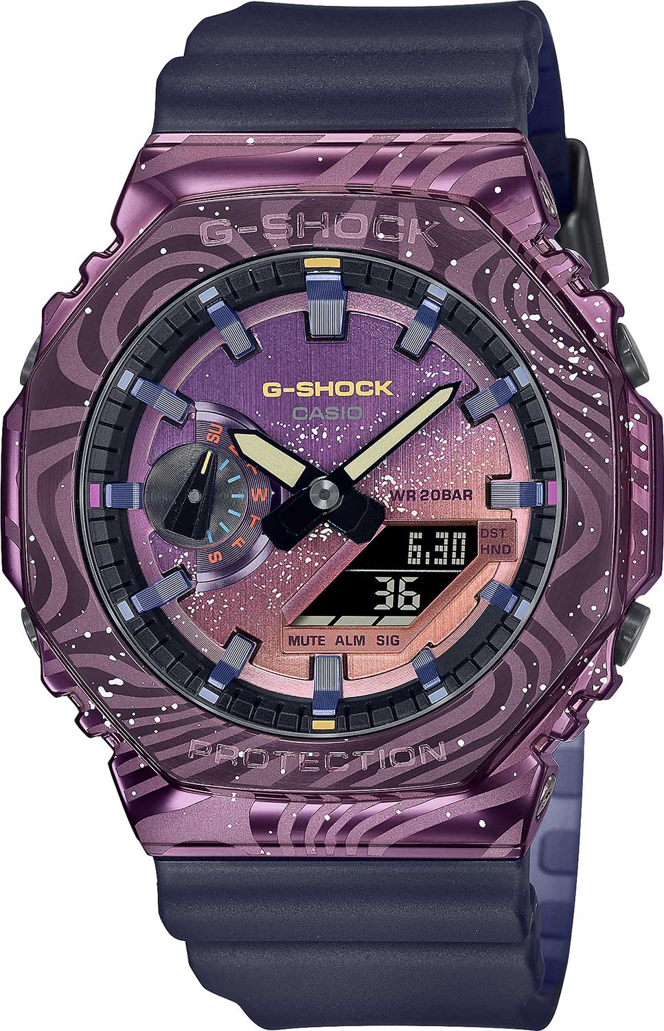 G-Shock x China Aerospace Sky Creative. Дизайн часов вдохновлен очарованием Млечного Пути и создана совместно с компанией China Aerospace Sky Creative, которая занимается исследованием космоса. Противоударный корпус защищает механизм от ударов и вибрации.