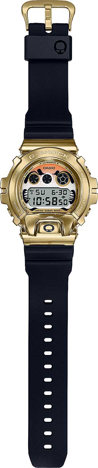 G-Shock Daruma. Модель вдохновлена куклой Дарума - божеством в японской синкретической мифологии, приносящим счастье. Золотистый корпус символизирует богатство и процветание. Противоударный корпус защищает механизм от ударов и вибрации. Электролюминесцентная подсветка освещает весь циферблат, после отпускания кнопки свечение продолжается еще некоторое время. Цвет подсветки: сине-зеленый.