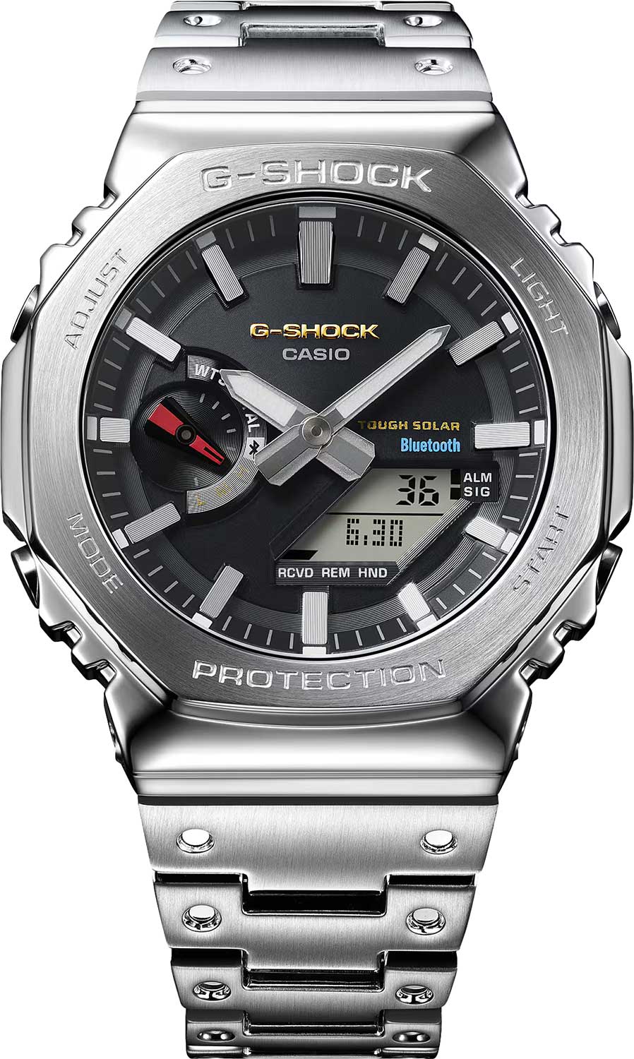 Автоматический переход на зимнее и летнее время, возможность включения/отключения данной функции. Переключение между домашним и мировым временем. • Беспроводная технология Bluetooth® со сверхнизким потреблением энергии для синхронизации со смартфоном. При подключении к смартфону часы автоматически корректируют текущее время, в том числе переход на зимнее/летнее время, копируют настройки мирового времени более чем для 300 городов. • Функции поиска телефона, отключения/включения звука и перемещения стрелок для беспрепятственного просмотра информации на цифровых дисплеях. • Отображение дней недели на шести языках. Смена отображения даты/месяца. • Задняя крышка с винтовым фиксатором. • Литой браслет с раскладывающейся тройной застежкой, расстегиваемой одним касанием.