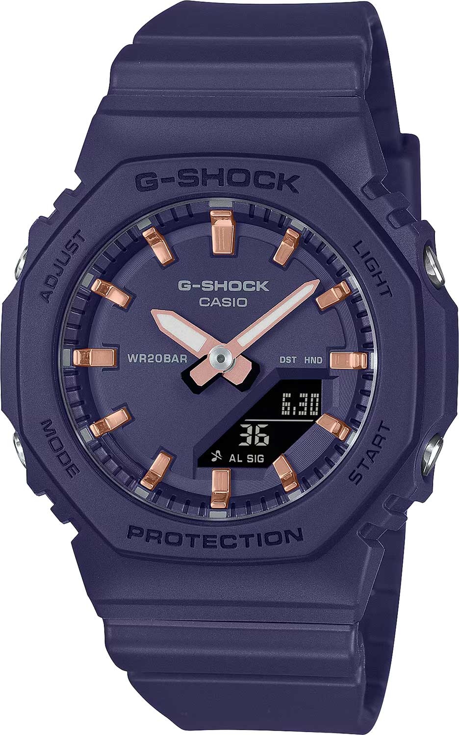 G-Shock. Женские часы. Корпус и ремешок выполнены из биопластика, который изготавливается из возобновляемых органических ресурсов. Противоударный корпус защищает механизм от ударов и вибрации.
