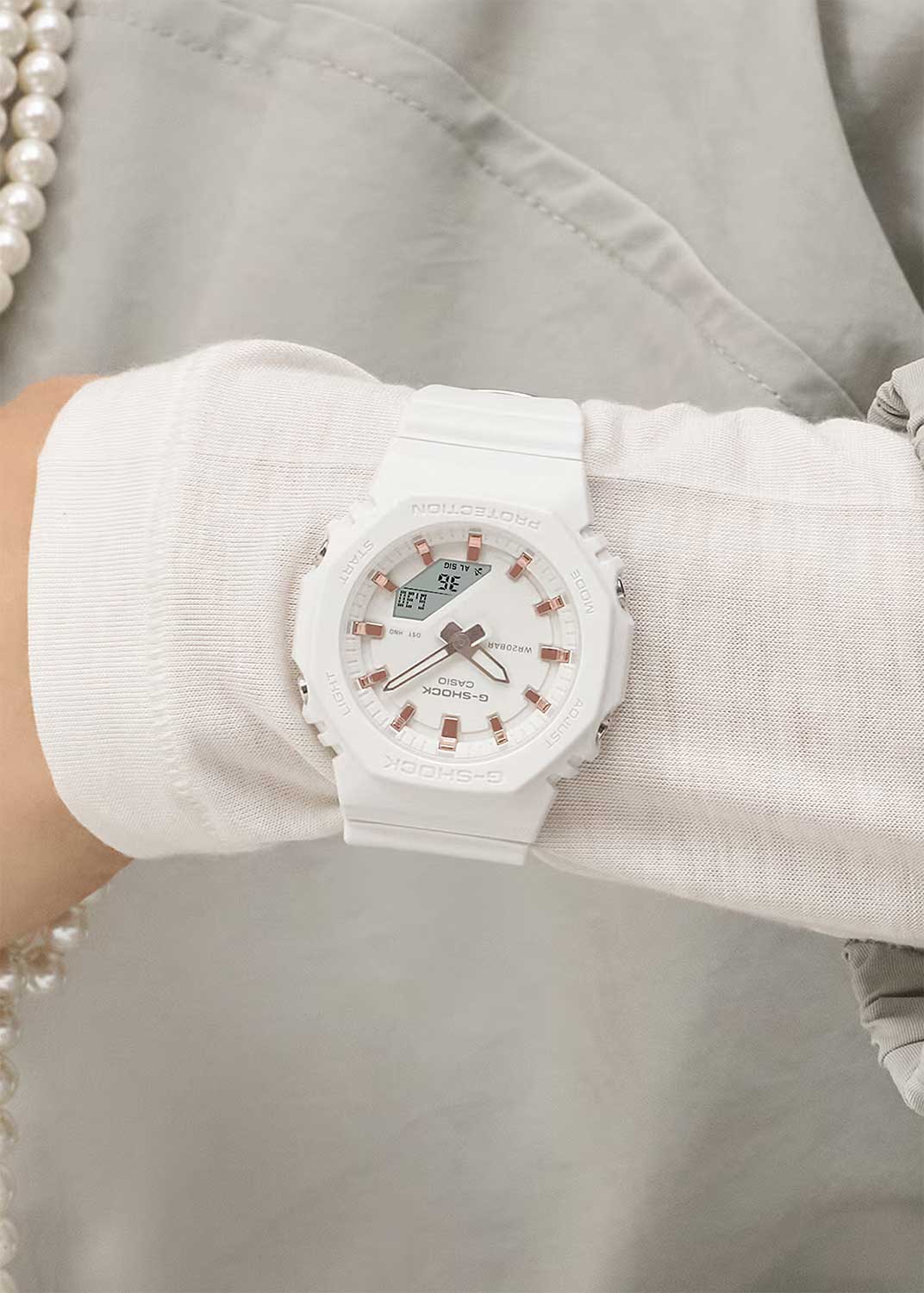 G-Shock. Женские часы. Корпус и ремешок выполнены из биопластика, который изготавливается из возобновляемых органических ресурсов. Противоударный корпус защищает механизм от ударов и вибрации.