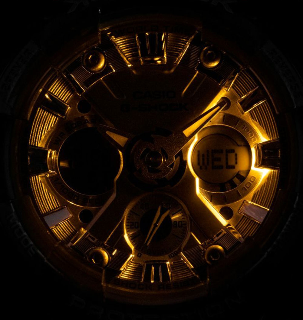 G-SHOCK представил миру свою новую коллекцию в уменьшенном корпусе. Металлический блеск с современной изюминкой, немного меньший размер для изысканной посадки на тонких запястьях. Эти компактные модели, созданные на основе популярных GA-110 и GA-120, привносят металлический блеск в популярный аналогово-цифровой дизайн G-SHOCK. Прозрачный ремешок и корпус в сочетании с двухцветными элементами циферблата создают сбалансированный, плавный, современный стиль.S-series. Унисекс часы. Противоударный корпус защищает механизм от ударов и вибрации. Защищены от магнитных полей. Светодиодная автоподсветка - при повороте часов в сторону лица подсветка дисплея осуществляется автоматически. Настраиваемое послесвечение 1,5 или 3сек. Цвет подсветки: оранжевый. Необритовое светонакопительное покрытие обеспечивает длительное послесвечение в темноте даже после кратковременного нахождения на свету. 12-ти и 24-х часовой формат времени. Секундомер с точностью показаний 1/1000с и временем измерения 100ч. SPLIT-хронограф. Расчет скорости по выбранной дистанции. Таймер обратного отсчета от 1мин до 24ч с автоповтором. Мировое время – 48 городов (29 часовых поясов), всемирное координированное время (UTC).