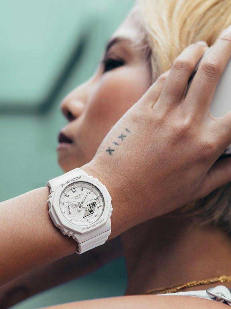 Функциональные спортивные часики оценят стильные и активные молодые люди.G-Shock.Унисекс часы со структурой Carbon Core Guard. Противоударный пластиковый корпус с карбоновыми волокнами более прочный и, в то же время, более легкий. Этот же материал защищает внутренний модуль от повреждений и деформаций при ударах. Двойная подcветка: циферблат и ЖК-дисплеи подсвечиваются светодиодом, благодаря наличию функции задержки, после отпускания кнопки освещение горит еще несколько секунд. Настраиваемое послесвечение 1,5 или 3сек. Цвет подсветки: белый. Необритовое светонакопительное покрытие обеспечивает длительное послесвечение в темноте даже после кратковременного нахождения на свету. 12-ти и 24-х часовой формат времени. Секундомер с двумя точностями показаний: 1/100с (до 1ч) и 1с (после 1ч) и временем измерения 24ч. SPLIT-хронограф.Таймер обратного отсчета от 1с до 24ч. Мировое время – 48 городов (31 часовой пояс), всемирное координированное время (UTC). Функция включения/отключения летнего времени. Ретроградный