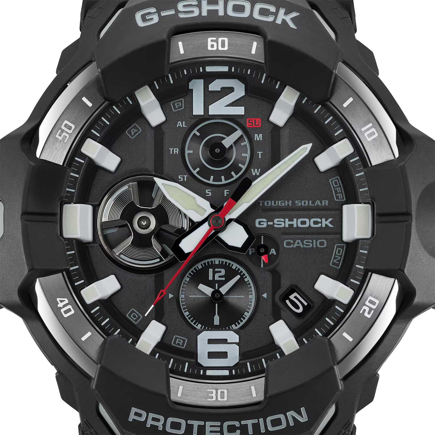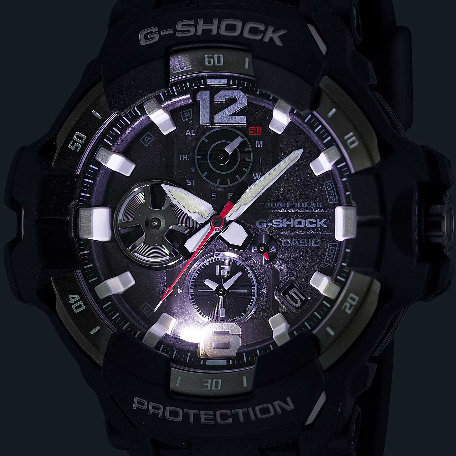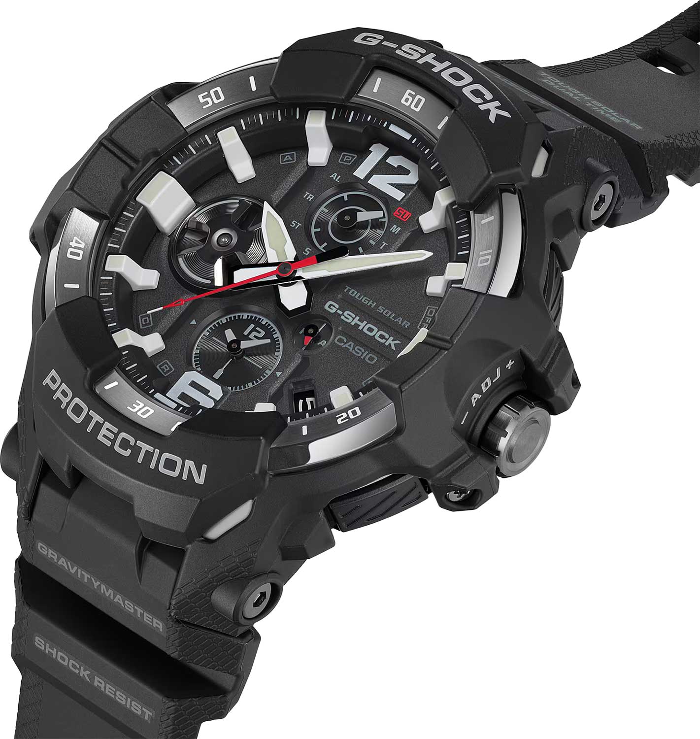Новинка в серии часов Gravitymaster, дизайн которых вдохновлен приборной панелью самолета. Корпус и ремешок выполнены из биопластика, который изготавливается из возобновляемых органических ресурсов. Питание от солнечной энергии Tough Solar - солнечные батарейки большой мощности. Индикатор заряда батареи. Функция автоматического сохранения энергии. Время работы аккумулятора без подзарядки – 5 месяцев, при включенной функции сохранения энергии - 18 месяцев.
