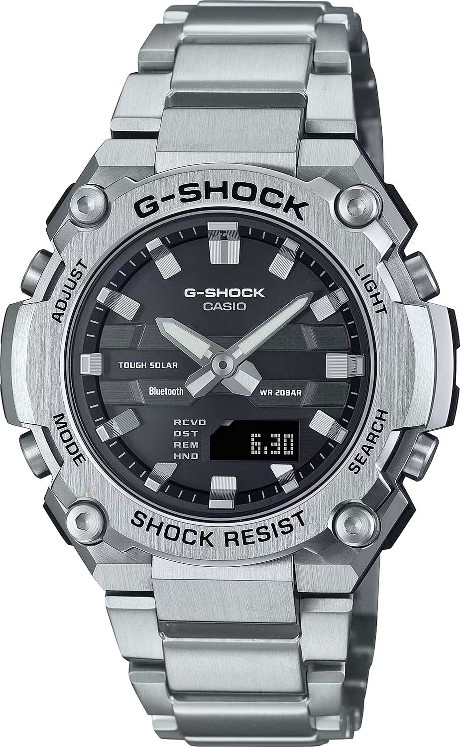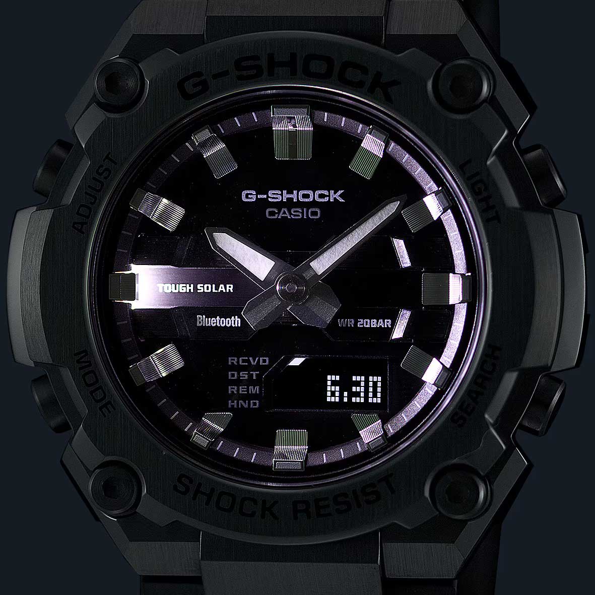 Мужские часы G-Steel. Питание от солнечной энергии Tough Solar - солнечные батарейки большой мощности, индикатор заряда батареи. Функция автоматического сохранения энергии. Время работы аккумулятора без подзарядки приблизительно 7 месяцев, при включенной функции сохранения энергии приблизительно 18 месяцев.