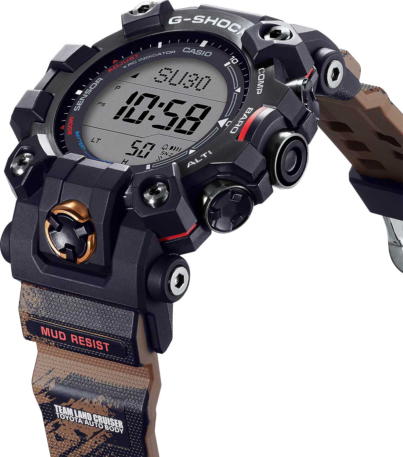 Часы Master Of G Mudman спроектированы и разработаны специально для работы в суровых условиях. Модель создана совместно с Team Land Cruiser Toyota Auto Body (TLC). Компания Toyota Auto Body является производителем минивэнов, коммерческих автомобилей и внедорожников, так же компания TCL является ежегодным участником ралли «Дакар» начиная с 1995 года.