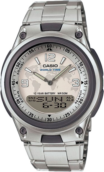 Практичные часы с функцией мирового времени и записной книжкой не позволит вам потеряться в часовых поясах во время путешествий. Collection. Циферблат подсвечивается светодиодом. Послесвечение. Цвет подсветки: оранжевый. 12-ти и 24-х часовой формат времени. Секундомер с точностью показаний 1/100с и временем измерения 24ч. SPLIT-хронограф. Таймер обратного отсчета от 1мин до 1ч. Мировое время – 30 городов (29 часовых поясов). Функция включения/отключения летнего времени. Записная книжка на 30 ячеек памяти с функцией сортировки для записи имен и телефонных номеров, каждая запись может включать в себя текст из 8 букв и 16 цифр. Стальная задняя крышка крепится на 4-х винтах. Батарейка рассчитана на 10 лет.