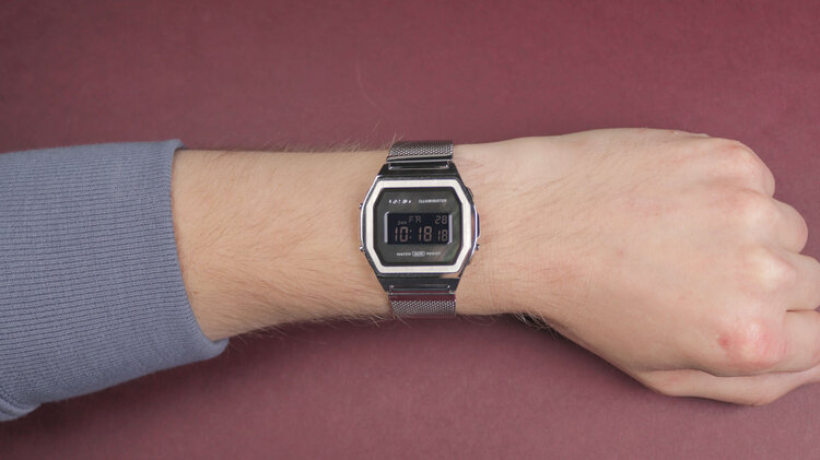 Винтажные часы украсят запястье молодежи, которые знают толк в элегантных аксессуарах. Iconic. Унисекс. 12-ти и 24-х часовой формат времени. Секундомер с точностью показаний 1/100с и временем измерения до 1ч. Электролюминесцентная подсветка освещает весь циферблат. Задняя крышка крепится на 4-х винтах. Браслет миланского плетения с системой быстрой замены.