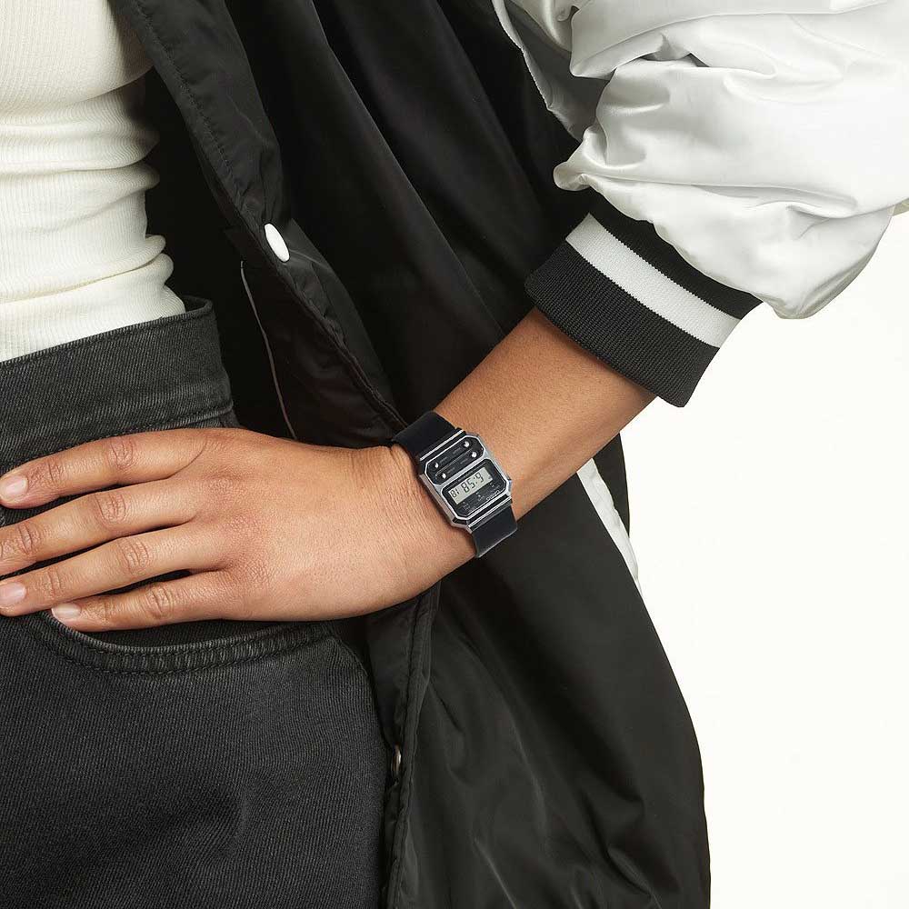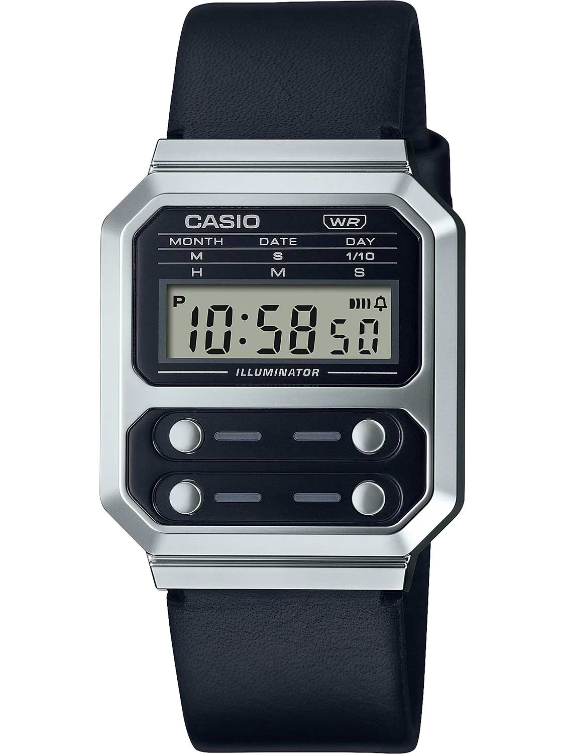 Модный ретро-аксессуар станет одним из главных экспонатов в вашей коллекции часов. Vintage. Унисекс. Часы являются копией модели F-100, которая была первой моделью Casio в пластиковом корпусе. Отличительной чертой часов являются 4 кнопки на лицевой панели. Циферблат подсвечивается светодиодом. Цвет подсветки: оранжевый. Секундомер с точностью показаний 1/10с и временем измерения 1ч. Водонепроницаемость в соответствии с DIN 8310/ISO 2281. Батарея рассчитана на 3 года. Ремешок с классической застежкой.