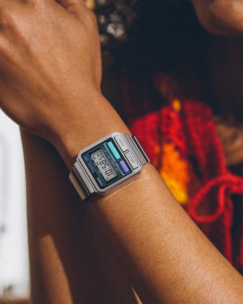 Интересный дизайн этого ретро-аксессуара идеально впишется в вашу коллекцию часов. Vintage. Унисекс. Отличительной чертой часов являются 4 кнопки на лицевой панели. Часы вдохновлены гаджетами 1980-х годов. Циферблат подсвечивается светодиодом. Цвет подсветки: оранжевый. Секундомер с точностью показаний 1/10с и временем измерения 1ч. Батарея рассчитана на 3 года. Браслет с регулируемой застежкой.