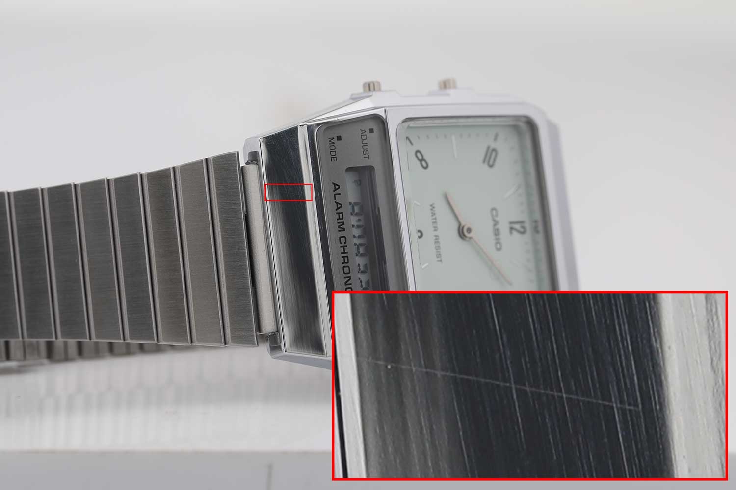 Vintage. Унисекс часы, дизайн которых вдохновлен моделью AQ-450, представленной в 1980-х годах. 12-ти и 24-х часовой формат времени. Секундомер с точностью показаний 1/100с и временем измерения 1ч. Одновременное отображение времени двух часовых поясов. Батарея рассчитана на 3 года. Водонепроницаемость в соответствии с DIN 8310/ISO 2281. Стальной браслет с регулируемой застежкой.