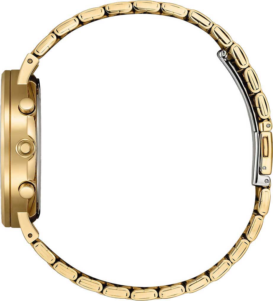 Часы-хронограф с секундомером. Секундомер с точностью показаний 1c и временем измерения 60мин. Секундная стрелка вынесена на отдельный циферблат. 12-ти и 24-х часовой формат времени. Циферблат с метками в виде штрихов. Окошко даты находится между часовыми отметками 4 и 5. Браслет с раскладывающейся застежкой.