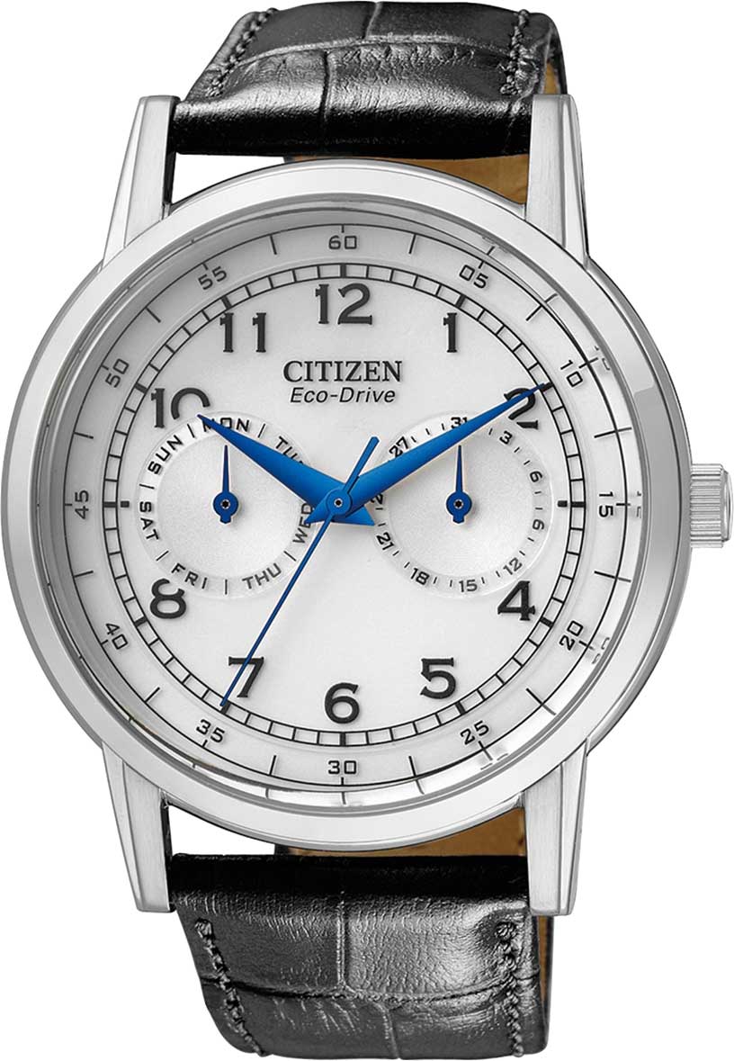 Простая форма, сдержанный стиль циферблата и аккуратные штрихи. Достойные часы на каждый день. Мужские часы. Система Eco-Drive, не требующая замены батарейки. Питание от солнечной энергии, запас энергии на 180 дней. Функция индикации заряда (EOL) и предотвращения перезарядки. Метки в виде арабских цифр. Число и день недели вынесены на отдельные циферблаты. Ремешок с классической застежкой.