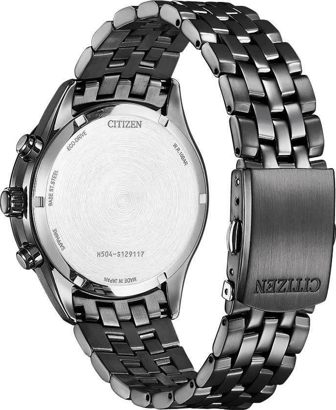 Спортивный дизайн, массивный корпус и широкий функционал придадут уверенности и решимости в любой ситуации. Ecо-Drive. Система Eco-Drive, не требующая замены батарейки. Питание от солнечной энергии, запас энергии на 150 дней. Функция индикации заряда (EOL) и предотвращения перезарядки. Часы-хронограф с секундомером и тахиметром. 12-ти и 24-х часовой формат времени. Окошко даты находится в положении 4 часа. Браслет с раскладывающейся застежкой.