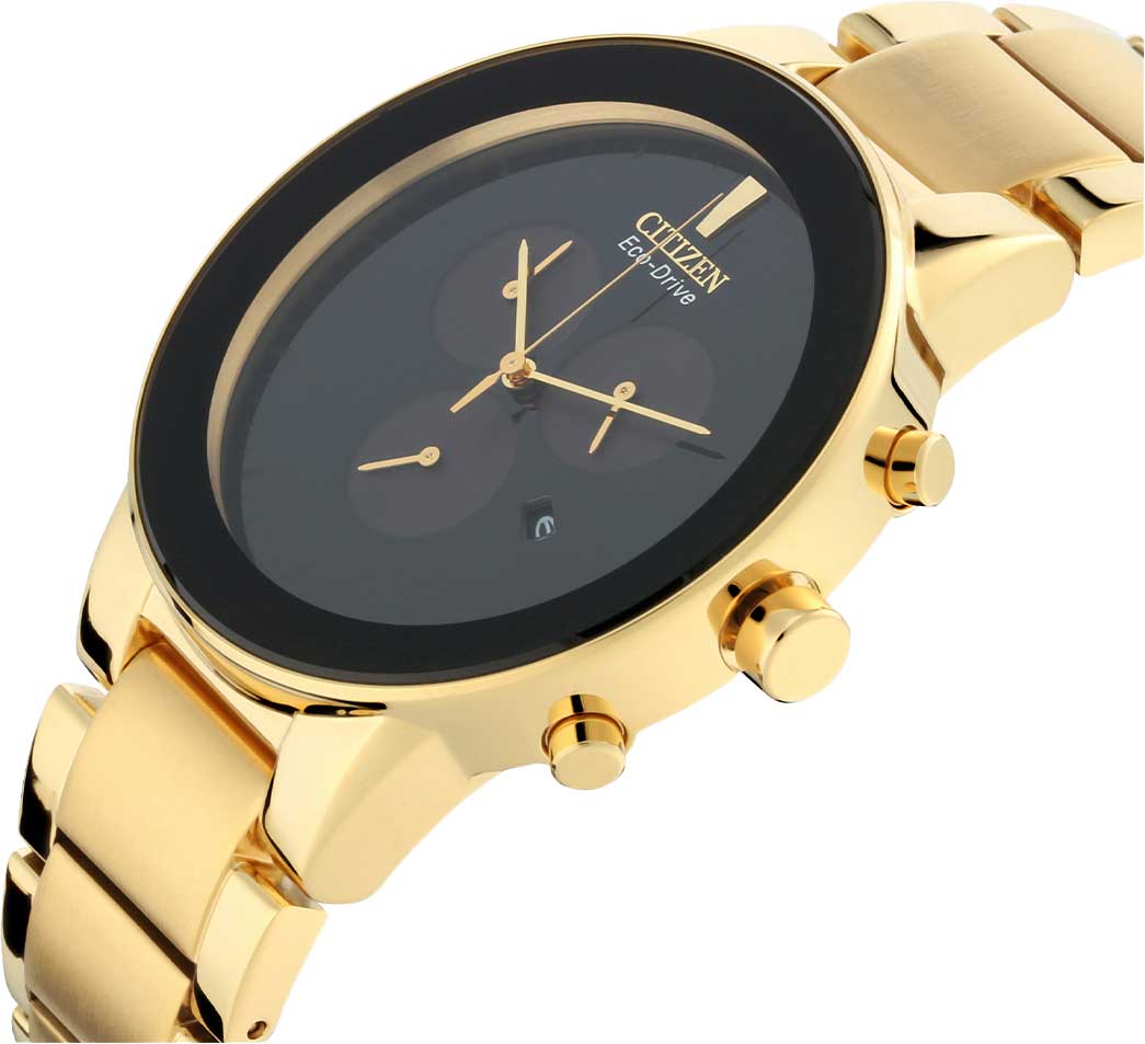 Ecо-Drive Axiom. Мужские часы. Система Eco-Drive, не требующая замены батарейки. Питание от солнечной энергии, запас энергии на 150 дней. Функция индикации заряда (EOL) и предотвращения перезарядки. Часы-хронограф с секундомером. Секундомер с точностью показаний 1c и временем измерения 60мин отображается центральной стрелкой. 12-ти и 24-х часовой формат времени. Циферблат с метками в виде штрихов. Окошко даты находится в положении 4 часа. Браслет с раскладывающейся застежкой.