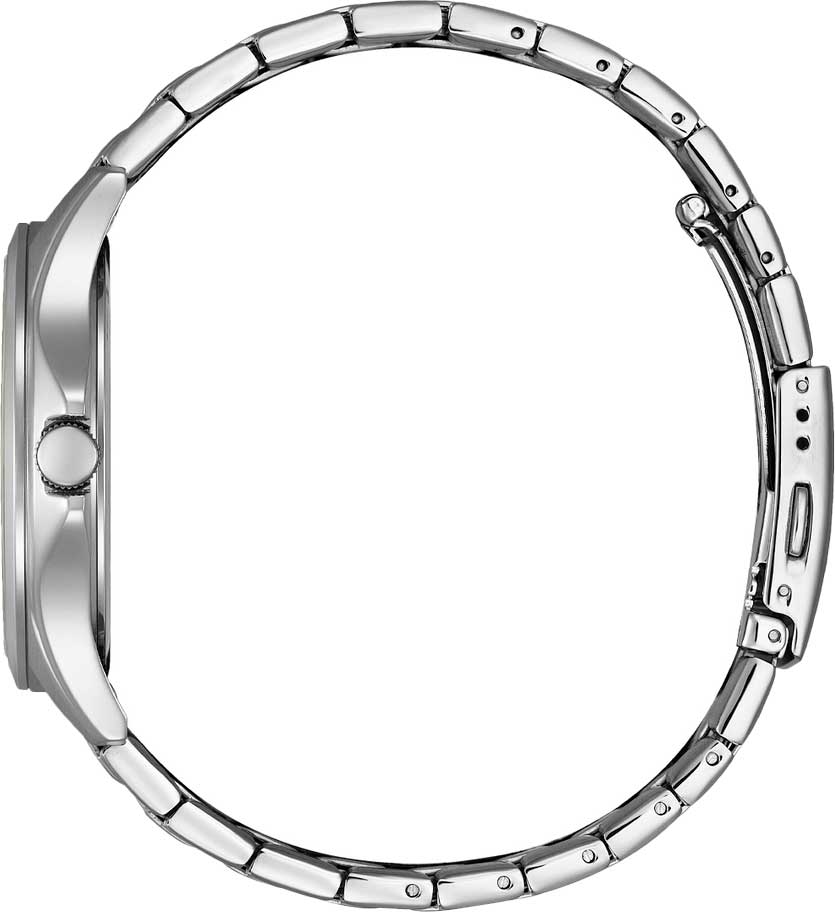 Мужские часы с круглым стальным корпусом. Циферблат выполнен по технологии Sunray (солнечные лучи). Метки в виде арабских цифр. Окошко даты и дня недели находится в положении 3 часа. Рифленая заводная головка с защитой. Стальной браслет с раскладывающейся застежкой.