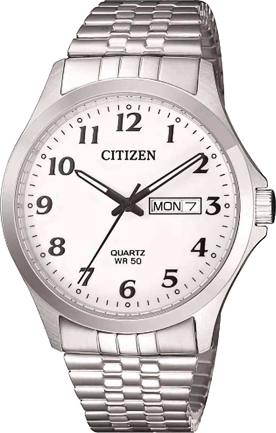 Мужские часы с круглым стальным корпусом. Циферблат с метками в виде арабских цифр. Окошко даты и дня недели находится в положении 3 часа. Заводная головка с защитой. Стальной браслет.
