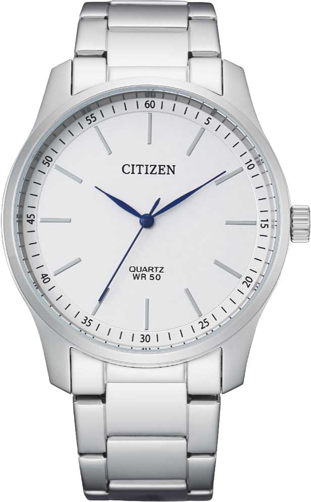 Часы от японского производителя Citizen гармонично завершат образ модного мужчины. Basic. Мужские часы с круглым стальным корпусом. Циферблат с метками в виде штрихов. Рифленая заводная головка. Браслет с раскладывающейся застежкой.