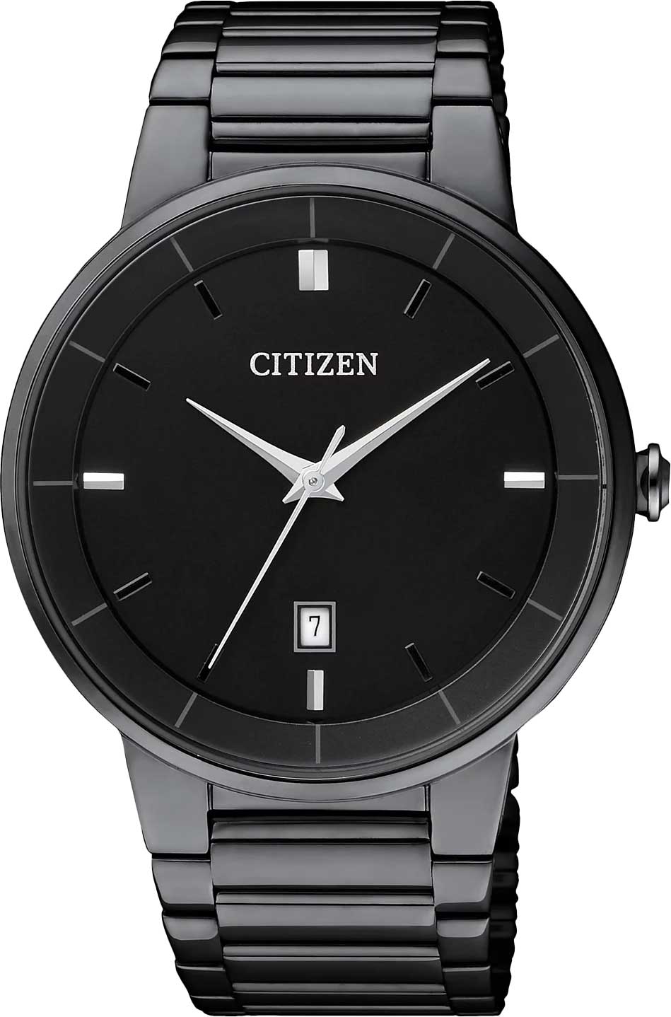 Мужские часы с круглым стальным корпусом. Циферблат с метками в виде штрихов выполнен по технологии Sunray (солнечные лучи). Окошко даты находится в положении 3 часа. Браслет с раскладывающейся застежкой.