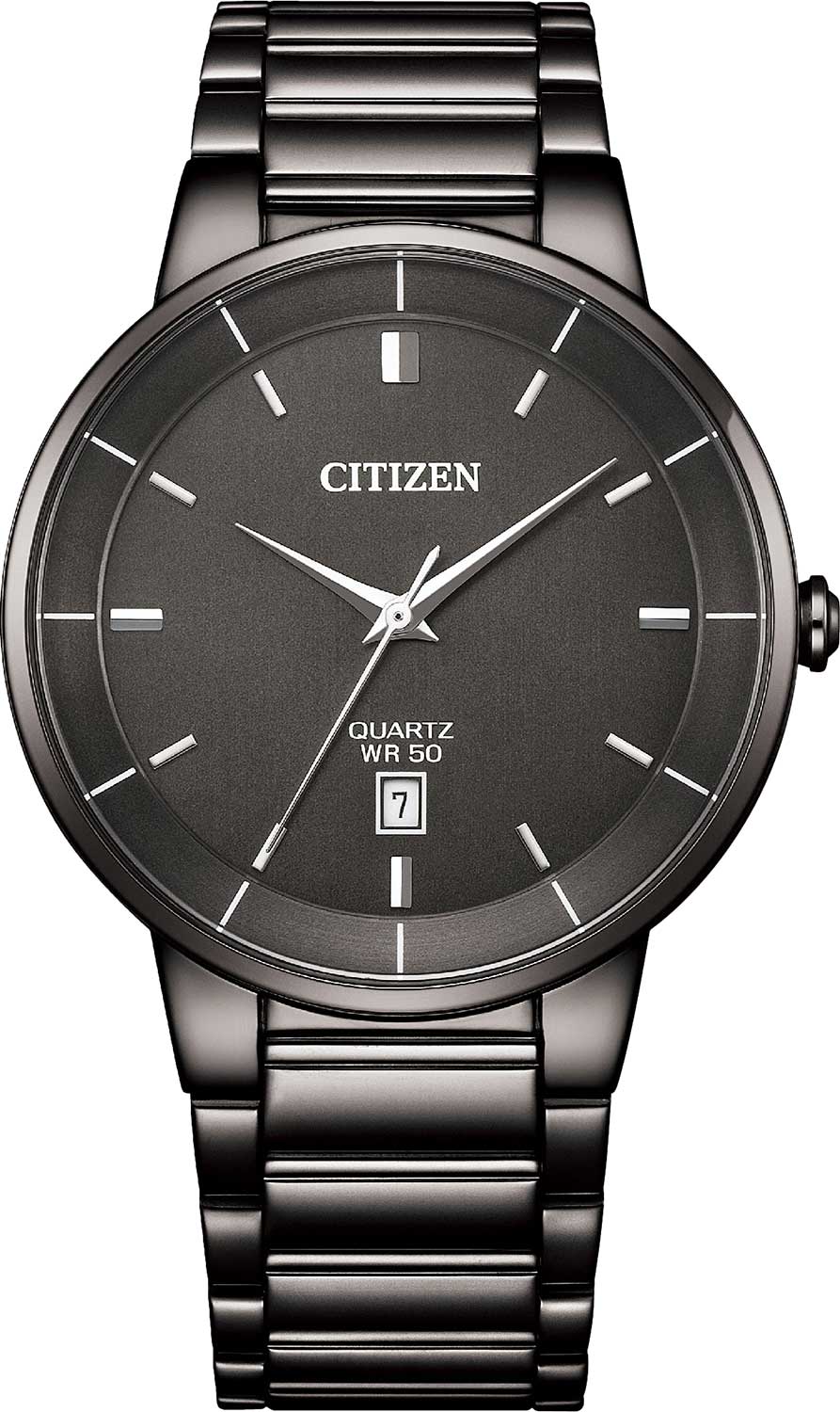 Удобные мужские часы на стальном браслете идеально подойдут для повседневного пользования. Часы со стальным корпусом. Циферблат с метками в виде штрихов. Окошко даты находится в положении 6 часов. Браслет с раскладывающейся застежкой.