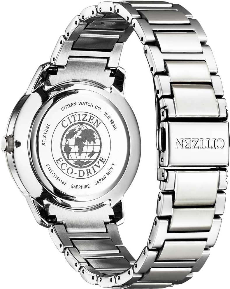 Сочетание элегантности и современности - лучший выбор для стильных мужчин. Мужские часы. Система Eco-Drive, не требующая замены батарейки. Питание от солнечной энергии, запас энергии на 180 дней. Функция индикации заряда (EOL) и предотвращения перезарядки. Перламутровый циферблат с метками в виде штрихов защищен прочным сапфировым стеклом. Окошко даты находится в положении 3 часа. Браслет с раскладывающейся застежкой.