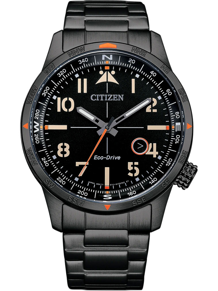 Сочетание элегантности и современности - лучший выбор для стильных мужчин. Eco-Drive. Мужские часы со шкалой компаса. Система Eco-Drive, не требующая замены батарейки. Питание от солнечной энергии, запас энергии на 180 дней. Функция индикации заряда (EOL) и предотвращения перезарядки. Функция предупреждения об установке времени. Циферблат с метками в виде штрихов и арабских цифр. Окошко даты и рифленая заводная головка находятся в положении 4 часа. Браслет с раскладывающейся застежкой.