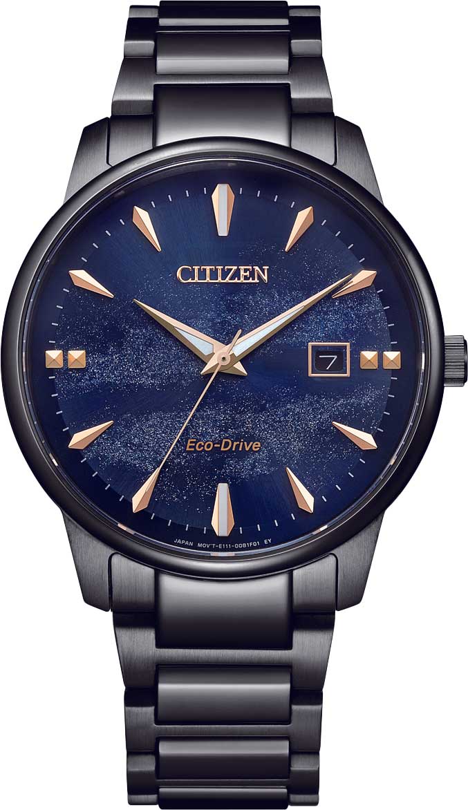 Система Eco-Drive, не требующая замены батарейки. Питание от солнечной энергии, запас энергии на 180 дней. Функция индикации заряда (EOL) и предотвращения перезарядки. Циферблат выполнен по технологии Sunray (солнечные лучи). Метки в виде штрихов. Окошко даты находится в положении 3 часа. Браслет с раскладывающейся застежкой. Имеется женский вариант модели EW2595-81L.