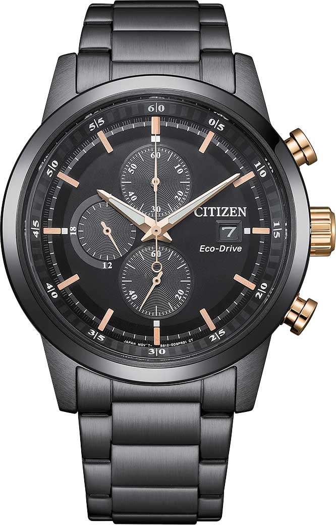 Надежный японский хронограф с системой Eco-Drive выбирают практичные молодые люди. Система Eco-Drive, не требующая замены батарейки. Питание от солнечной энергии, запас энергии на 210 дней. Функция индикации заряда (EOL) и предотвращения перезарядки. Часы-хронограф с секундомером. Секундомер с точностью 1/5сек и временем измерения 1ч. 12-ти и 24-х часовой формат времени. Секундная стрелка вынесена на отдельный циферблат. Циферблат с метками в виде штрихов. Окошко даты находится в положении 3 часа. Браслет с раскладывающейся застежкой.