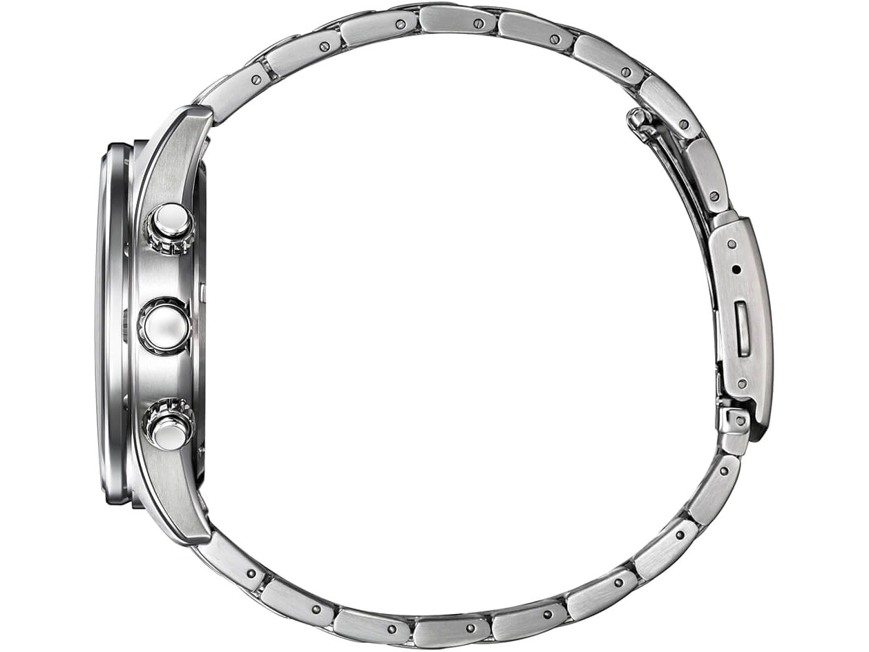 Питается светом. Любым светом. Часы, которым никогда не нужна батарейка. В основе лежит революционная технология использования света, объединяющая время, свет и будущее. Eco-Drive Chronograph. Система Eco-Drive, не требующая замены батарейки. Питание от солнечной энергии, запас энергии на 210 дней. После появления предупреждения о недостаточном заряде до остановки часов около 7 дней. Функция индикации заряда (EOL) и предотвращения перезарядки. Мужские наручные часы-хронограф с секундомером и тахиметром. Круглый стальной корпус с минеральным стеклом. Циферблат выполнен по технологии Sunray (солнечные лучи). Заостренные прямоугольные стрелки в стиле Baton. Метки в виде арабских цифр. Метки и стрелки с люминесцентным покрытием, которое светится в темноте после непродолжительной зарядки на свету. 12-ти и 24-х часовой формат времени отображается на отдельном циферблате. Окошко даты находится в положении 3 часа. Рифленая заводная головка. Завинчивающаяся задняя крышка. Надежный стальной браслет с раскладывающейся застежкой.