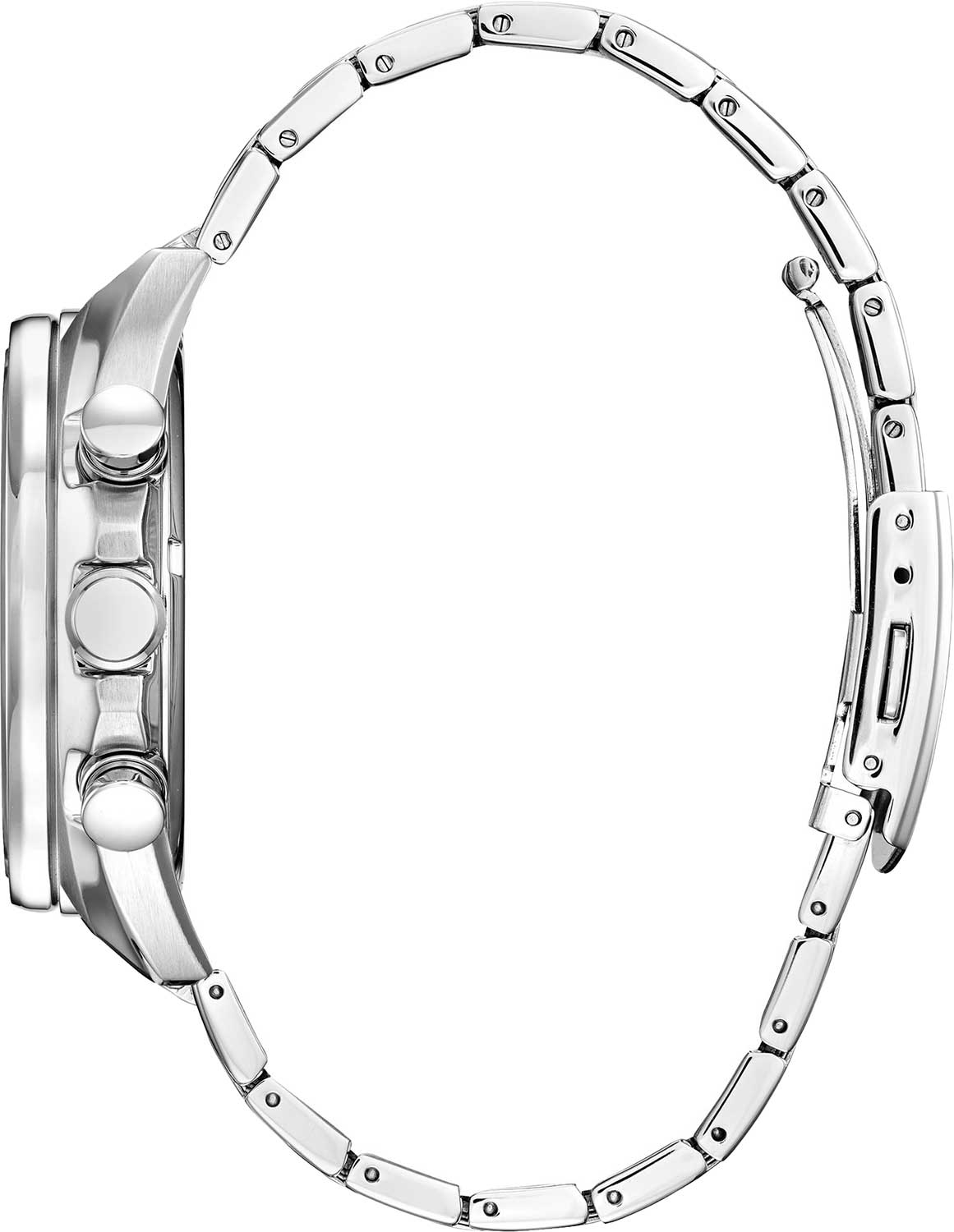 Циферблат с метками в виде штрихов выполнен по технологии Sunray (солнечные лучи). Окошко даты находится между отметками 4 и 5 часов. Заводная головка с защитой. Браслет с раскладывающейся застежкой.