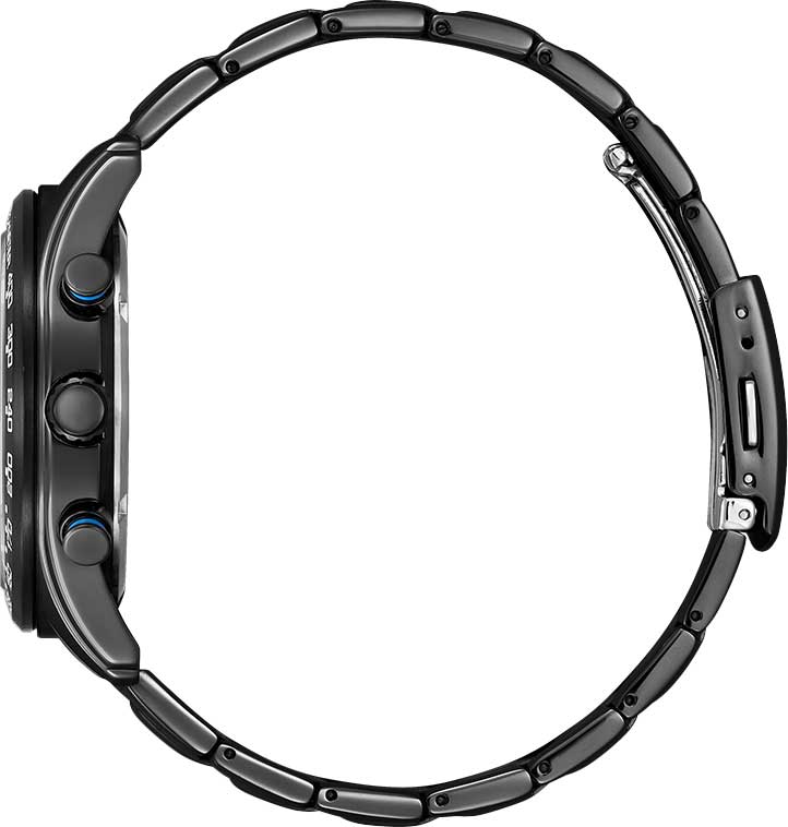 Сдержанный дизайн и расширенный функционал - безупречный выбор мужчин, знающих цену каждому мгновению. Система Eco-Drive, не требующая замены батарейки. Питание от солнечной энергии, запас энергии на 270 дней. Функция индикации заряда (EOL) и предотвращения перезарядки. Часы-хронограф с секундомером и тахиметром. 12-ти и 24-х часовой формат времени. Циферблат с метками в виде штрихов выполнен по технологии Sunray (солнечные лучи). Окошко даты находится между отметками 4 и 5 часов. Браслет с раскладывающейся застежкой.