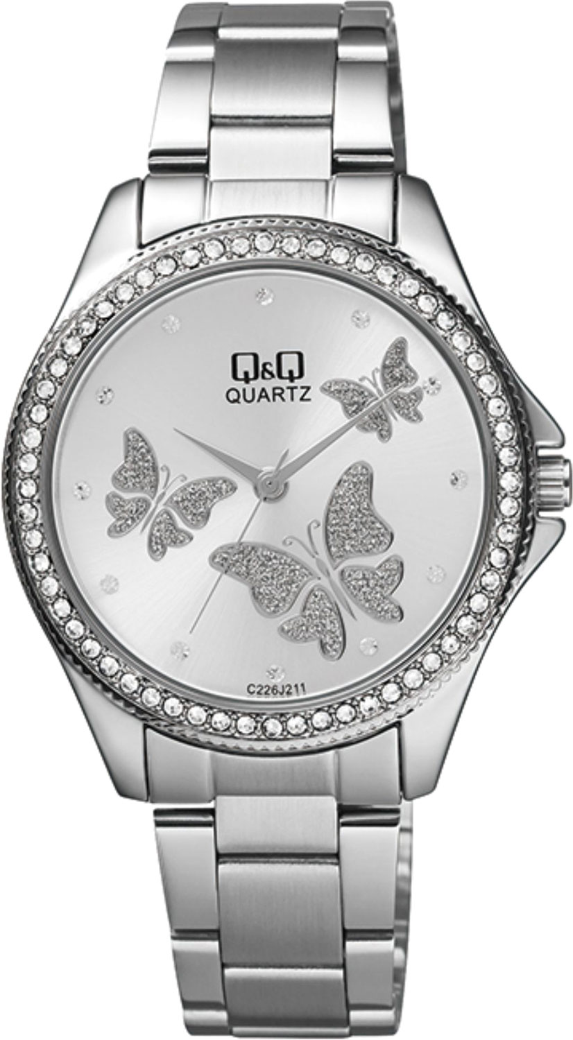 Сказочный дизайн с бабочками на циферблате напомнит о лете, а роскошный блеск кристаллов – о том, что безупречность вам к лицу. Будничные женские наручные часы. Круглый металлический корпус с минеральным стеклом. Безель украшен паве из кристаллов. Циферблат украшен кристаллами. Метки в виде точек. Рифленая заводная головка с защитой. Надежный стальной браслет.