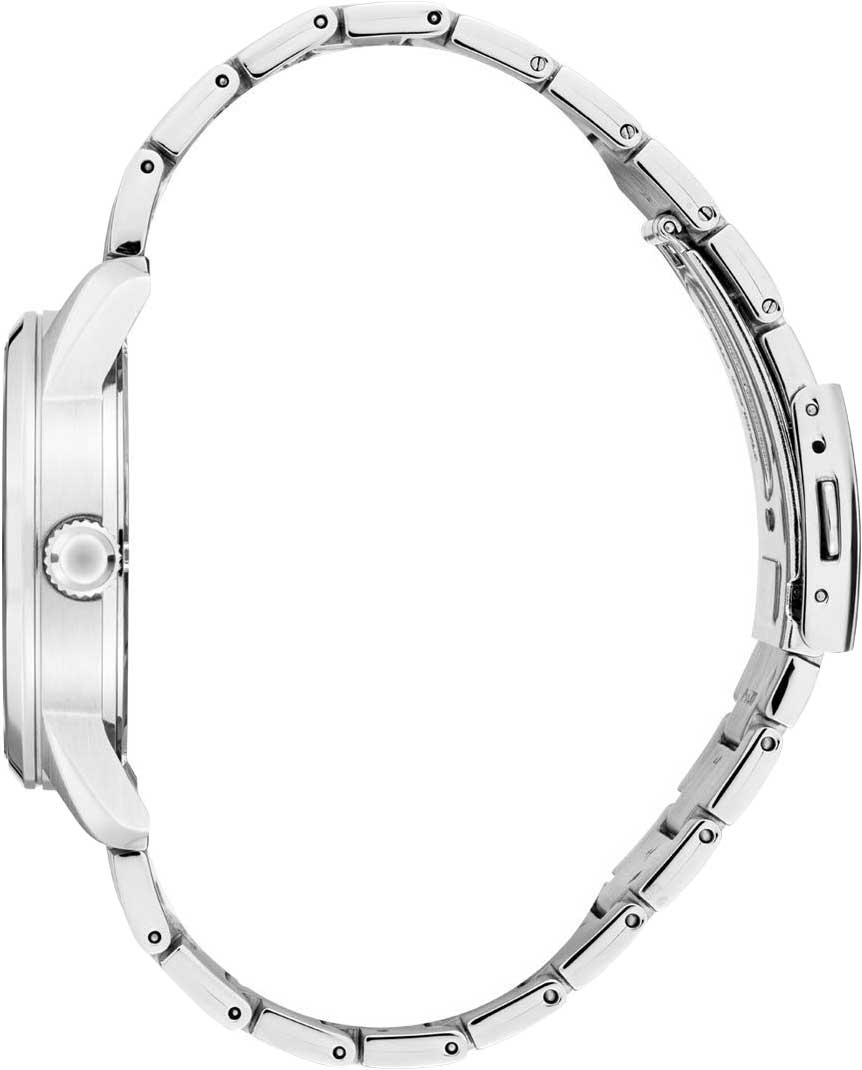 Циферблат с метками в виде штрихов выполнен по технологии Sunray (солнечные лучи). Окошко даты и дня недели находится в положении 3 часа. Завинчивающаяся задняя крышка. Браслет с тройной раскладывающейся застежкой.
