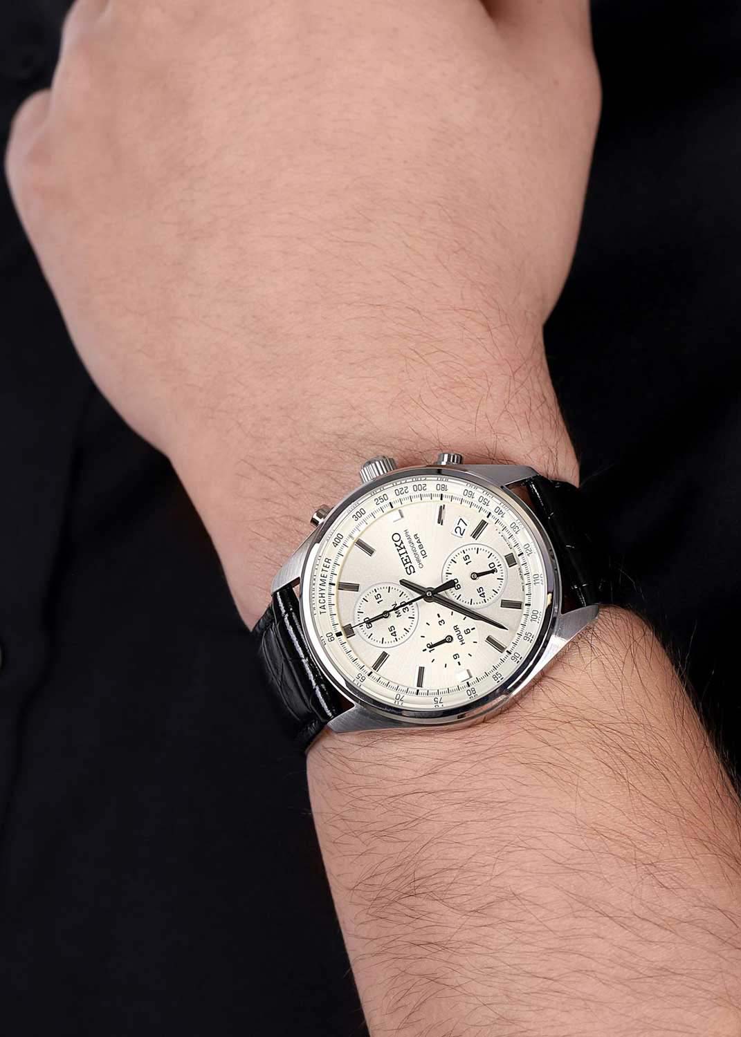 CS Dress. Часы-хронограф с секундомером и тахиметром. Секундомер с точностью 1/5сек и временем измерения 12ч. Секундная стрелка вынесена на отдельный циферблат.