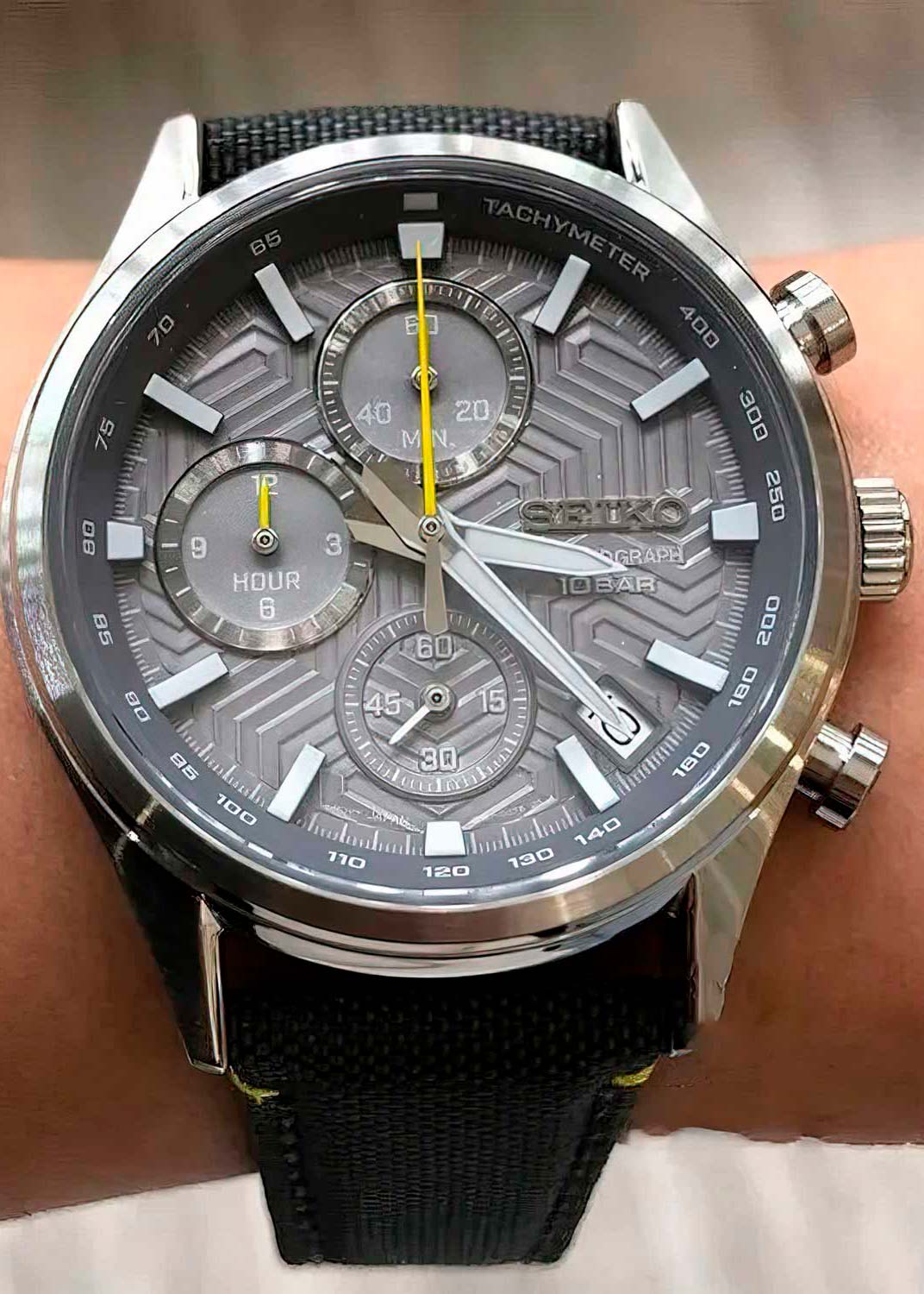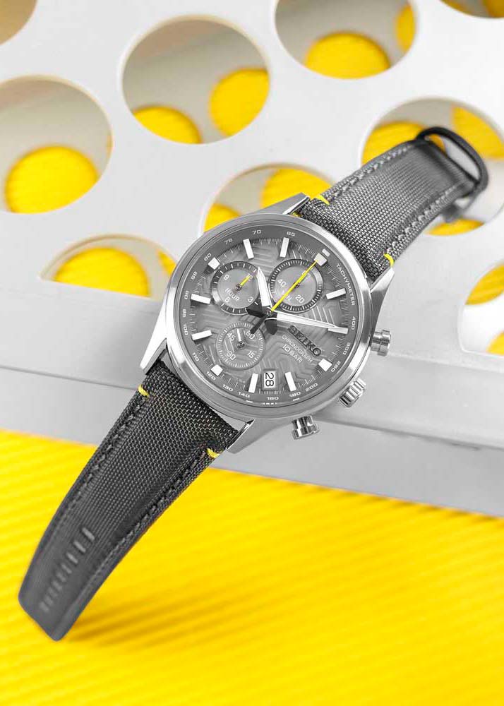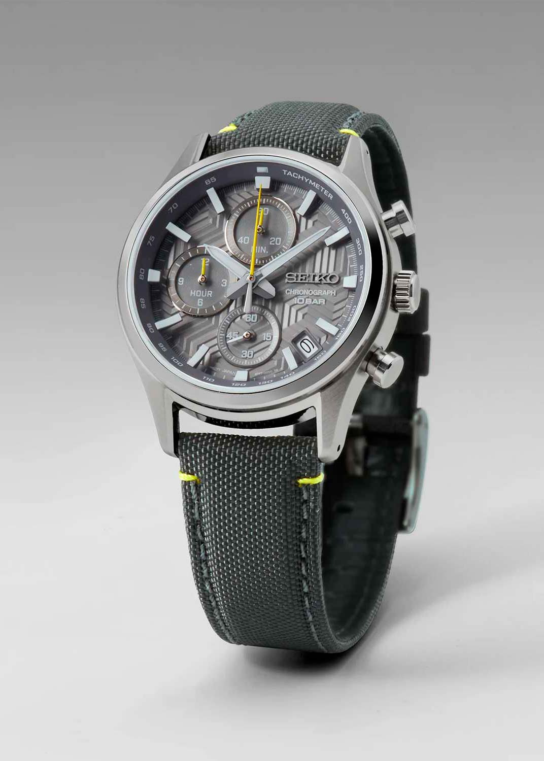 Часы-хронограф с секундомером и тахиметром. Секундомер с точностью 1/5сек и временем измерения 12ч отображается центральной стрелкой. Защищены от магнитных полей (до 4800 А/м). Секундная стрелка вынесена на отдельный циферблат. Двухуровневый циферблат с метками в виде штрихов защищен прочным сапфировым стеклом. Окошко даты находится между отметками 4 и 5 часов. Рифленая заводная головка. Завинчивающаяся задняя крышка. Батарея рассчитана на 3 года. Ремешок с классической застежкой.
