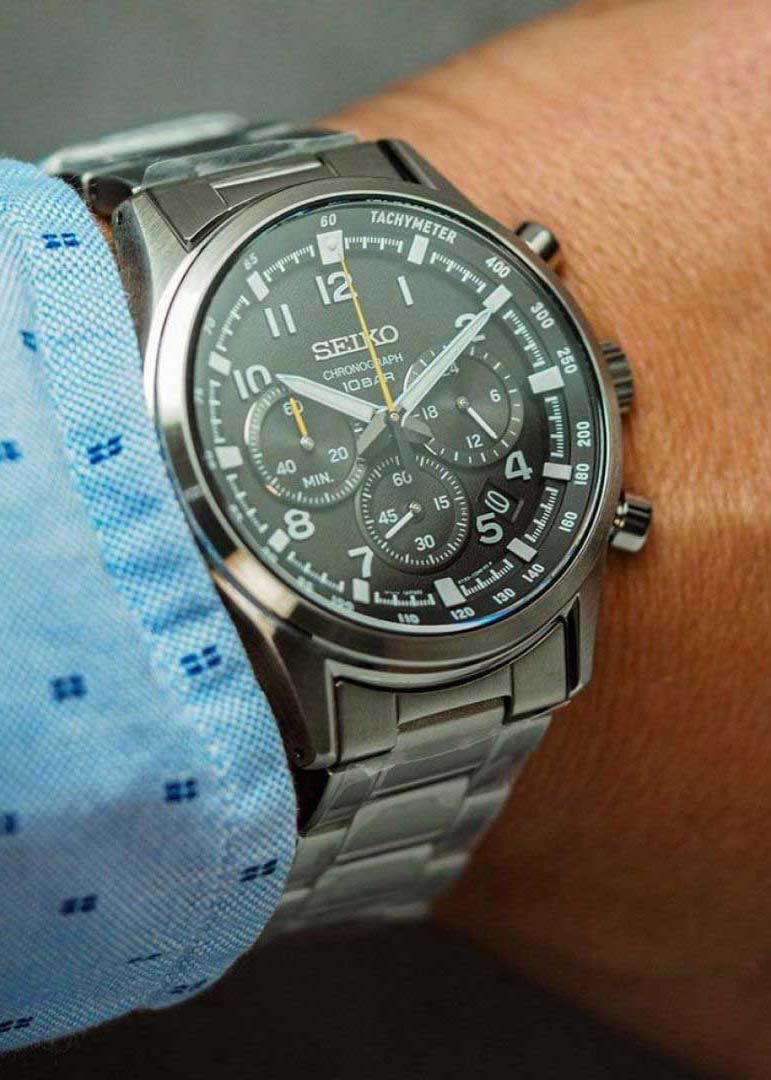 Discover More. Часы-хронограф с секундомером и тахиметром. Секундомер с точностью 1/5сек и временем измерения 1ч отображается центральной стрелкой. Защищены от магнитных полей (до 4800 А/м). Секундная стрелка вынесена на отдельный циферблат. 12-ти и 24-х часовой формат времени. Циферблат с метками в виде штрихов и арабских цифр. Стрелки и метки с фирменным люминесцентным покрытием LumiBrite, которое светится в темноте после непродолжительной подзарядки на свету. Окошко даты находится между отметками 4 и 5 часов. Рифленая заводная головка. Завинчивающаяся задняя крышка. Батарея рассчитана на 3 года. Надежный браслет с раскладывающейся застежкой.