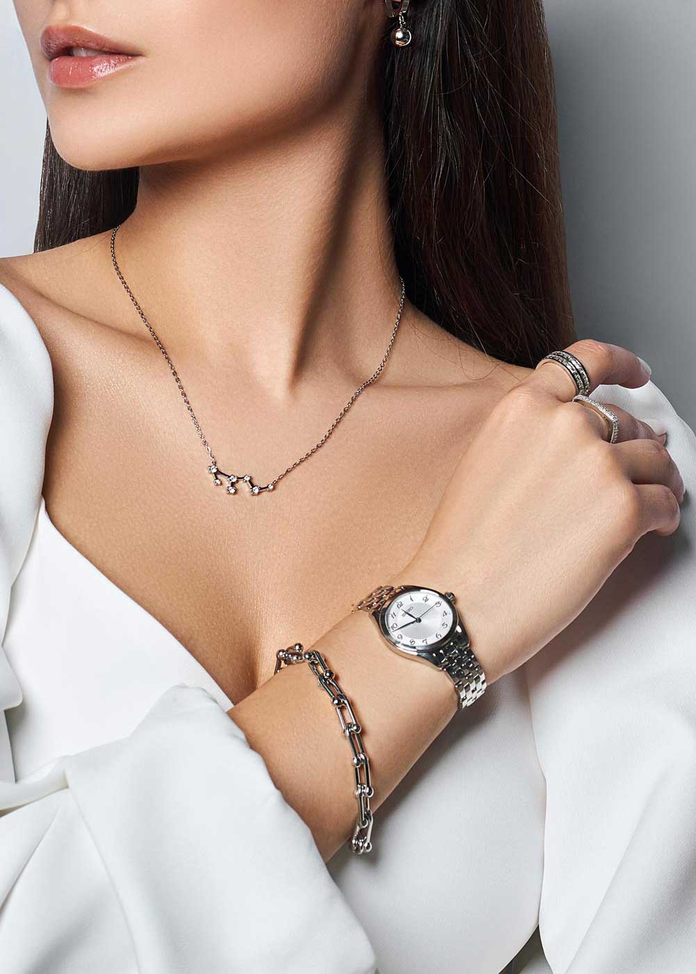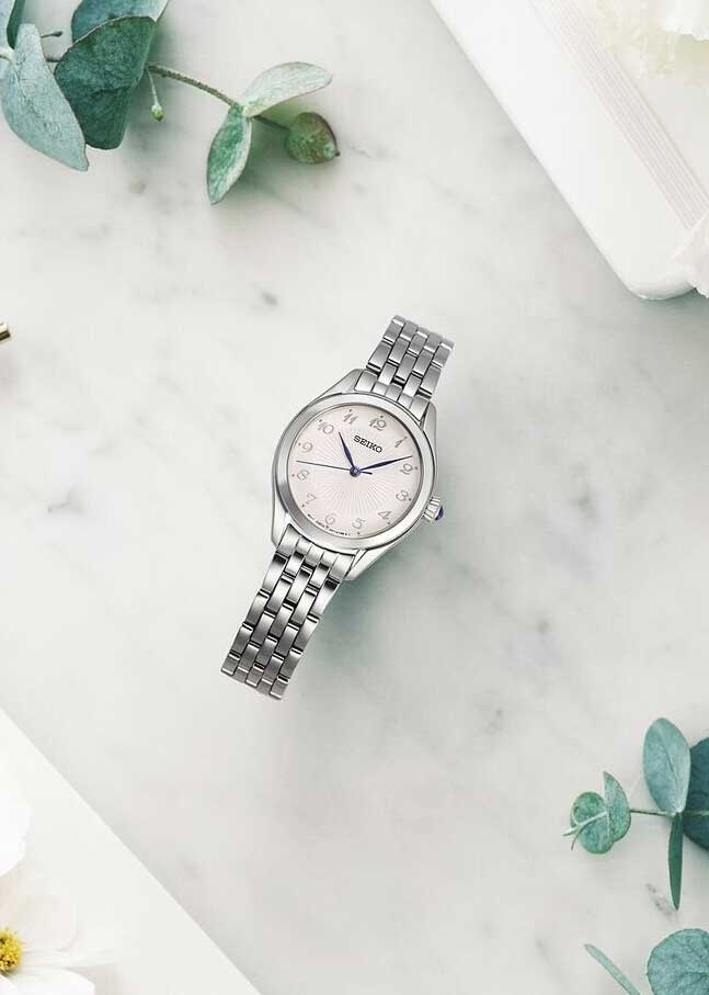 Discover More. Женские кварцевые часы в круглом корпусе из нержавеющей стали. Циферблат с метками в виде арабских цифр. Рифленая заводная головка украшена камнем в форме кабошона. Браслет с тройной раскладывающейся застежкой. Батарея рассчитана на 3 года.