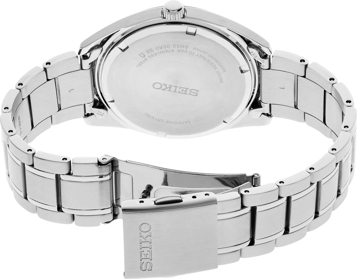 Окошко даты находится в положении 3 часа. Рифленая заводная головка. Завинчивающаяся задняя крышка. Батарея рассчитана на 3 года. Браслет с раскладывающейся застежкой. Имеется женский вариант модели SUR533.