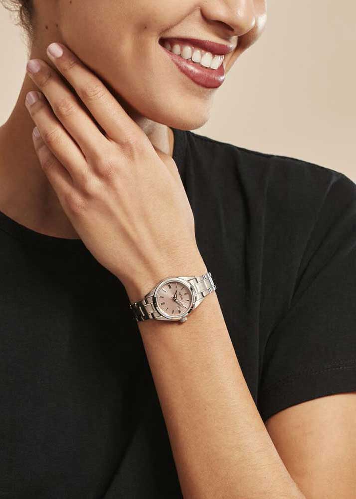 Discover More. Женские часы. Защищены от магнитных полей (до 4800 А/м). Циферблат выполнен по технологии Sunray (солнечные лучи) и защищен прочным сапфировым стеклом. Метки в виде штрихов. Стрелки и метки с фирменным люминесцентным покрытием LumiBrite, которое светится в темноте после непродолжительной подзарядки на свету.