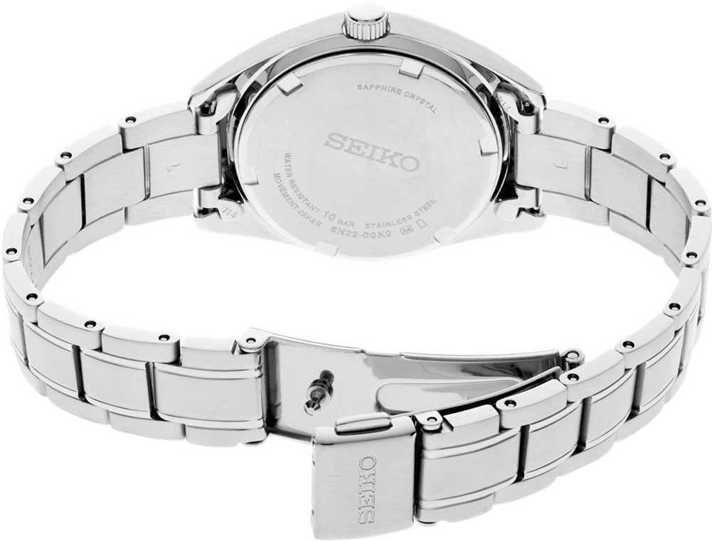 Окошко даты находится в положении 3 часа. Рифленая заводная головка. Завинчивающаяся задняя крышка. Батарея рассчитана на 3 года. Браслет с раскладывающейся застежкой.