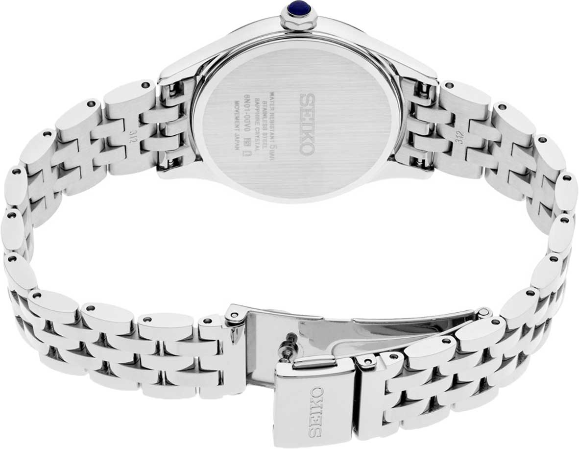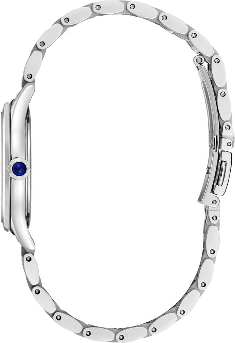 Discover More. Женские часы. Защищены от магнитных полей (до 4800 А/м). Циферблат с метками в виде римских цифр защищен прочным сапфировым стеклом. Рифленая заводная головка украшена синим камнем в форме кабошона. Батарея рассчитана на 3 года. Браслет с тройной раскладывающейся застежкой.