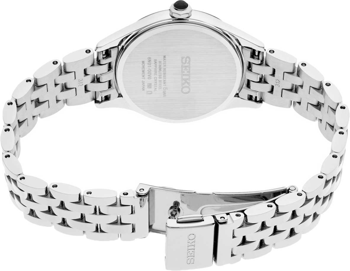 Discover More. Женские часы. Защищены от магнитных полей (до 4800 А/м). Циферблат с метками в виде римских цифр защищен прочным сапфировым стеклом. Рифленая заводная головка украшена черным камнем в форме кабошона. Батарея рассчитана на 3 года. Браслет с тройной раскладывающейся застежкой.