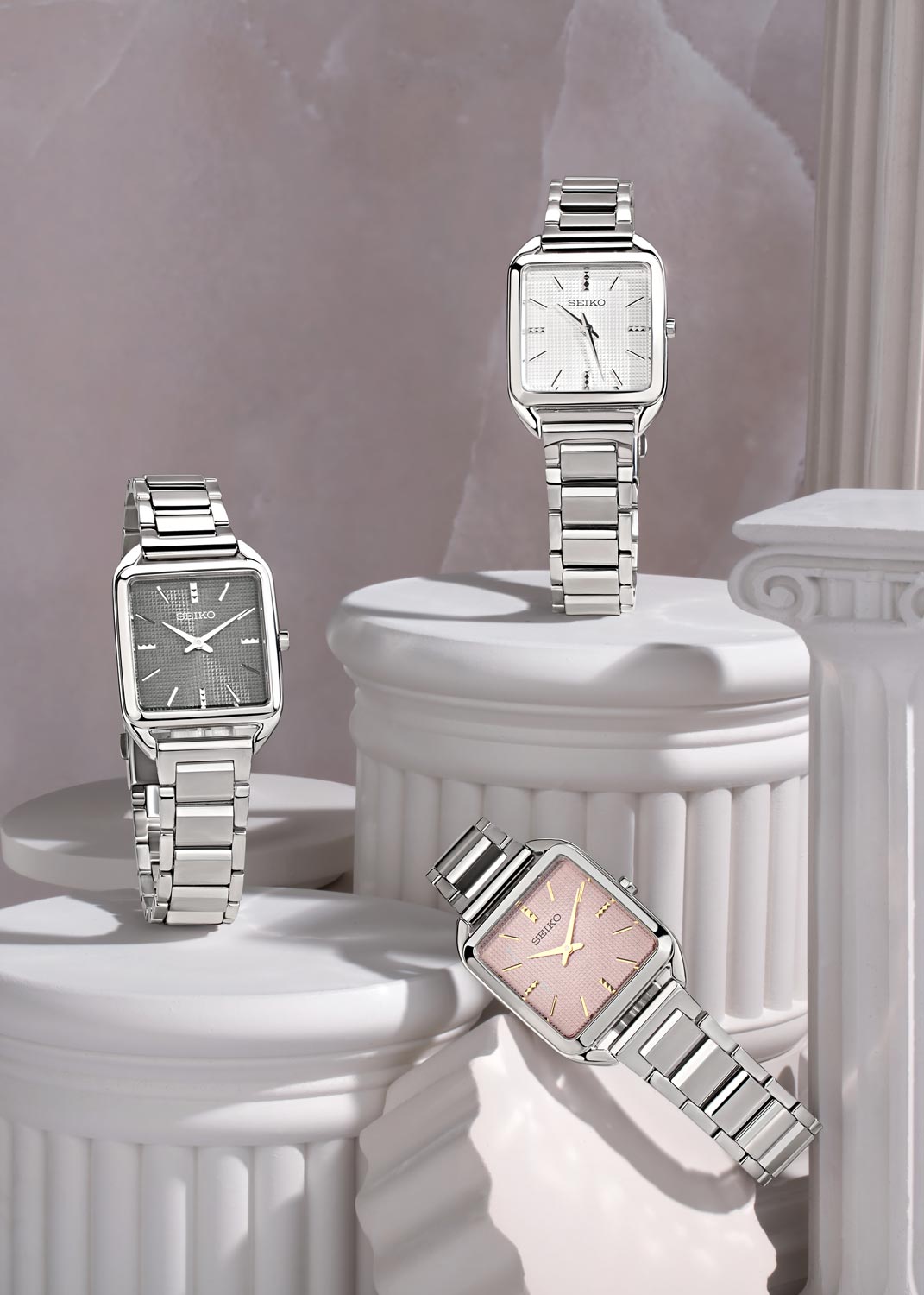 Discover More. Женские часы с прямоугольным стальным корпусом. Текстурированный циферблат с метками в виде штрихов. Батарея рассчитана на 3 года. Браслет с тройной раскладывающейся застежкой.