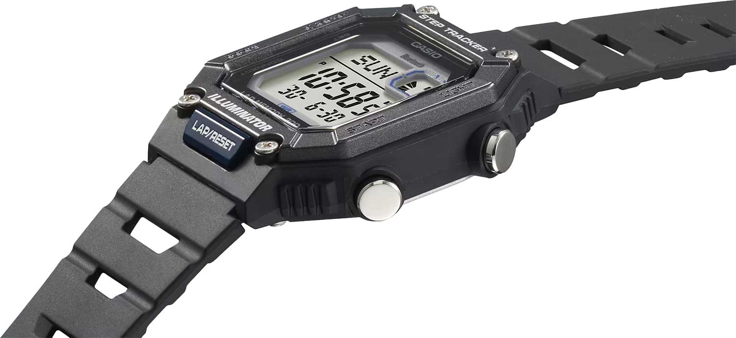 Недорогой функциональный аксессуар станет незаменим в повседневной жизни любого спортсмена. Standard Digital. Циферблат подсвечивается светодиодом. Настраиваемое послесвечение 1,5 или 3сек. Цвет подсветки: оранжевый. Шагомер измеряет количество шагов от 0 до 999999. Графическое отображение пройденных шагов за последние 7ч. Установка цели в диапазоне от 1000 до 50 000. Напоминание об отсутствии активности. Второй часовой пояс. 12-ти и 24-х часовой формат времени. Секундомер с двумя точностями показаний: 1/100с (до 1ч) и 1с (после 1ч) и временем измерения 24ч. SPLIT-хронограф. Память на 200 этапов. Таймер обратного отсчета от 1с до 1ч. Беспроводная технология Bluetooth® со сверхнизким потреблением энергии для синхронизации со смартфоном с помощью приложения Casio Watches. При подключении к смартфону часы корректируют текущее время, копируют настройки мирового времени (300 городов), а также позволяют получить данные о месте и времени, показания секундомера и др. Функции включения/отключения звука, энергосбережения и поиска телефона. Акселерометр. Батарея рассчитана на 2 года. Стальная задняя крышка крепится на 4-х винтах. Перфорированный ремешок из полимерного материала с классической застежкой.