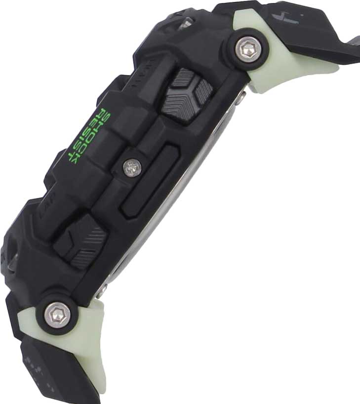 G-SQUAD. Мужские часы. Люминесцентные элементы на корпусе и ремешке светятся в темноте. Противоударный корпус защищает механизм от ударов и вибрации. Светодиодная автоматическая супер-подсветка с выбираемой длительностью свечения 1,5 или 3 секунды. Цвет подсветки: белый. Дисплей mip LCD позволяет легко считывать данные даже в темноте.