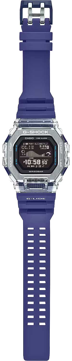 Часы G-Lide с функцией виброоповещения создана для серфинга и экстремальных видов спорта. Ремешок выполнен из биопластика, который изготавливается из возобновляемых органических ресурсов. Противоударный корпус защищает механизм от ударов и вибрации.