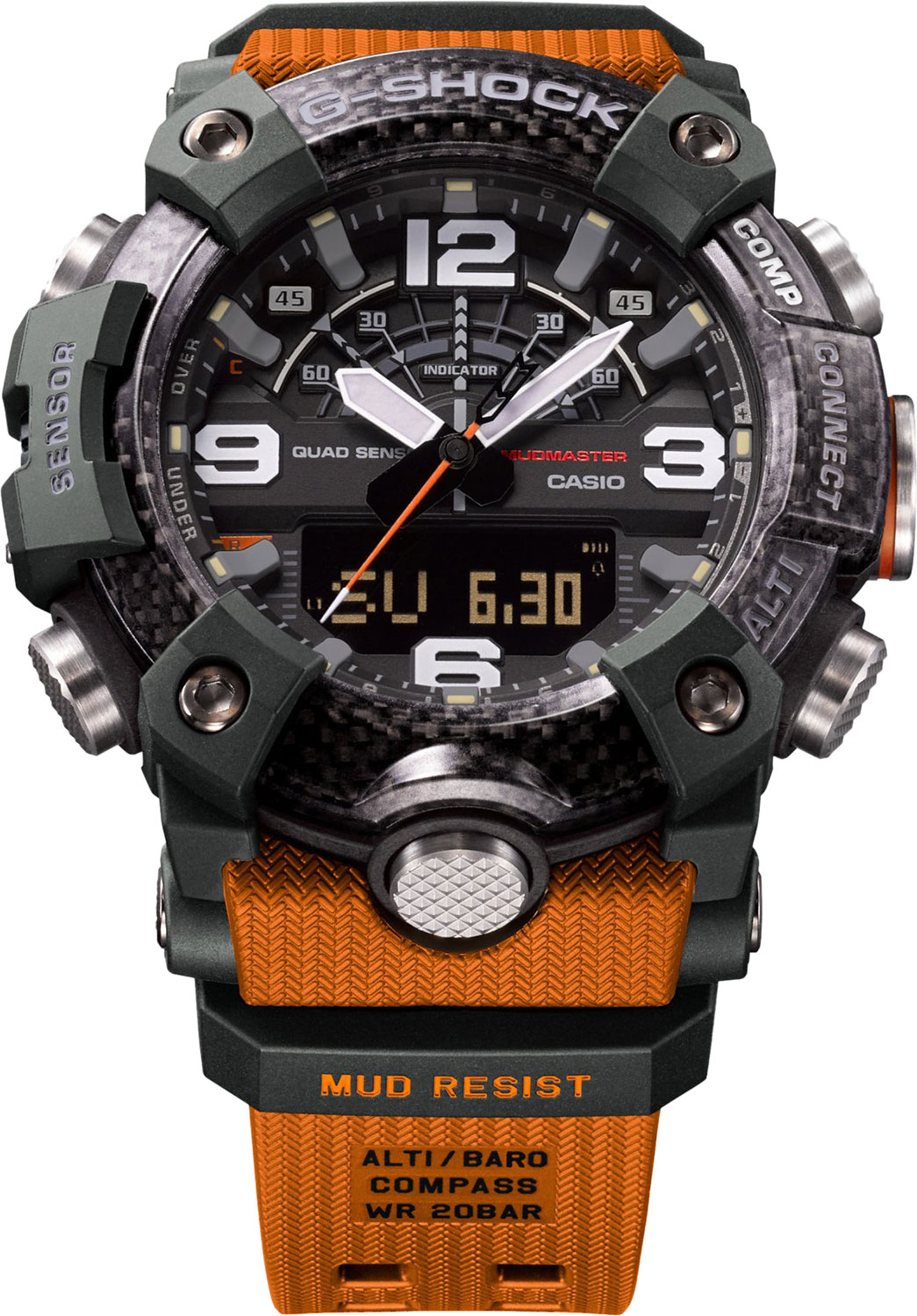 При создании этой модели были учтены экстремальные ситуации, эти часы никогда не подведут вас.Часы Master Of G Mudmaster спроектированы и разработаны специально для работы в суровых условиях. Индикатор низкого заряда батареи. Противоударный корпус с технологией Carbon Core Guard, которая защищает механизм от ударов и вибрации. Защита от попадания внутрь пыли и грязи. Электролюминесцентная подсветка освещает весь циферблат. Функция парный иллюминатор обеспечивает подсветку не только аналогового циферблата, но и цифрового дисплея. Цвет подсветки: белый. Необритовое светонакопительное покрытие обеспечивает длительное послесвечение в темноте даже после кратковременного нахождения на свету. 12-ти и 24-х часовой формат времени. Время восхода и захода Солнца. Секундомер с точностью показаний 1/100с и временем измерения 24ч. Таймер обратного отсчета времени от 1мин до 24ч. Шагомер измеряет количество шагов от 0 до 999999. Высотомер - встроенный датчик барометрического давления с возможностью вывода результатов в единицах высоты над уровнем моря (до 10000 метров). Память данных высотометра до 40 записей. График набора высоты. Барометр - измерение атмосферного давления от 260 до 1100 гПа (от 195 до 825 мм рт. ст.). Встроенный датчик температуры от -10° до +60°С с точностью 0,1°C. Мировое время – 38 городов (38 часовых поясов), всемирное координированное время (UTC).