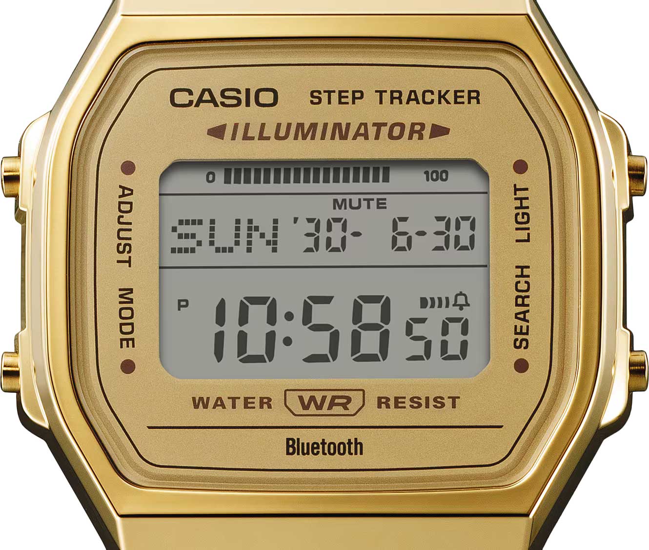 Без сомнения эти часы найдут поклонников среди тех, кто ищет функциональные аксессуары в винтажном стиле. Функциональная новинка в серии Vintage. Унисекс часы. Циферблат подсвечивается ярким светодиодом. Настраиваемое послесвечение 1,5 или 3сек. Цвет подсветки: оранжевый. Второй часовой пояс. 12-ти и 24-х часовой формат времени. Секундомер с двумя точностями показаний: 1/100с (до 1ч) и 1с (после 1ч) и временем измерения 24ч. Память на 200 этапов (дата, время, время круга). SPLIT-хронограф. Таймер обратного отсчета от 1сек до 1ч. Шагомер измеряет количество шагов от 0 до 999999. Установка цели в диапазоне от 1000 до 50000 шагов. Звуковое напоминание об отсутствии активности и достижении цели. Отображение пройденных шагов за последние 7ч на 6-ти уровневом графике. Беспроводная технология Bluetooth® со сверхнизким потреблением энергии для синхронизации со смартфоном. При подключении к смартфону часы корректируют текущее время и упрощают настройку различных функций из приложения, таких как мировое время (до 300 городов), данные о количестве шагов, секундомера и др. Функции отключения/включения звука, поиска телефона, энергосбережения и оповещения о низком заряде батареи. Батарея рассчитана на 2 года. Стальная задняя крышка крепится на 4-х винтах. Стальной браслет с регулируемой застежкой.